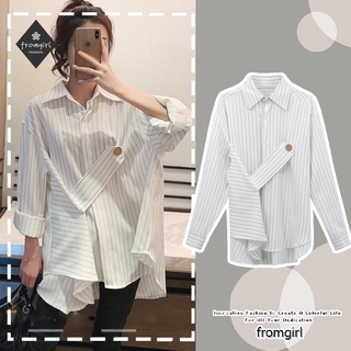Áo Sơ Mi Dáng Rộng Họa Tiết Sọc Ngang Năng Động Cho Nữ