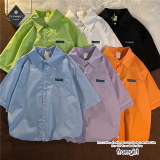 Áo Sơ Mi Tay Ngắn Dáng Rộng Màu Sắc Đơn Giản Phong Cách Retro Hàn Quốc