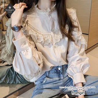 Áo Sơ Mi Tay Dài Cổ Tròn Phối Ren Mỏng Thời Trang Mùa Thu Kiểu Pháp Cổ Điển Ngọt Ngào Mới Cho Nữ