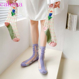 CABEZA Vớ Lụa Mỏng Thoáng Khí Họa Tiết Hoa Đơn Giản Phong Cách Harajuku Cho Nữ