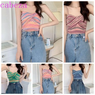 Áo Croptop Hai Dây Dệt Kim Dáng Ôm Họa Tiết Kẻ Sọc Thời Trang Quyến Rũ Cho Nữ