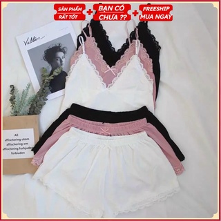 PVN12421 Bộ đồ lót ngủ, đồ mặc nhà ren tăm 2 dây T2
