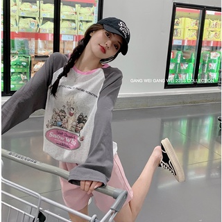 Áo Thun Nữ Dài Tay Cổ Tròn In Hình Vui Nhộn Kiểu Hàn Quốc