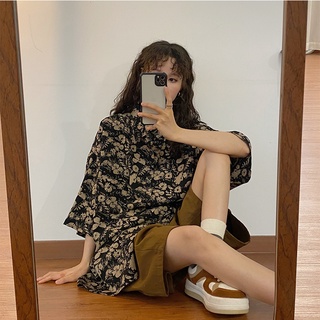 Áo Sơ Mi Tay Ngắn Dáng Rộng In Hoa Phong Cách Vintage Mới