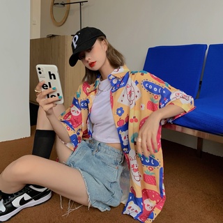 Áo Sơ Mi Tay Ngắn Dáng Rộng In Họa Tiết Dễ Thương Thời Trang Mùa Hè Cho Nữ