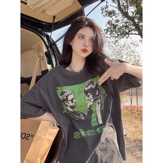 Áo Thun Ngắn Tay Cổ Tròn Dáng Rộng Thời Trang Retro Mỹ Cá Tính Cho Nữ