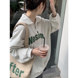 Áo Sweater Cổ Polo Dáng Rộng In Chữ Thời Trang Mùa Thu Dành Cho Nữ