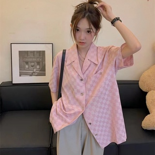 Áo Sơ Mi Tay Ngắn Họa Tiết Sọc Caro Thời Trang Mùa Hè Cho Nữ