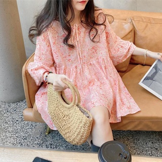 Đầm Hoa Tay Ngắn Cổ Chữ V Thời Trang Dành Cho Nữ