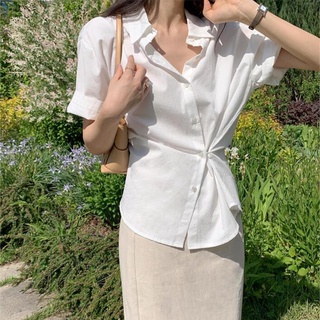 Áo Sơ Mi Tay Ngắn Màu Sắc Đơn Giản Phong Cách Hàn Quốc Cho Nữ