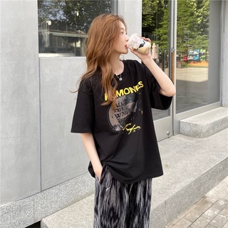 Áo Thun Tay Ngắn Dáng Rộng Chất Liệu Cotton In Họa Tiết Thời Trang Mùa Hè Cho Nữ