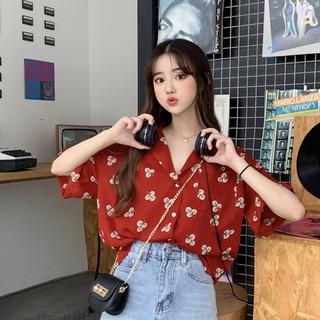 Áo Sơ Mi Ngắn Tay Thêu Họa Tiết Vintage Cho Nữ