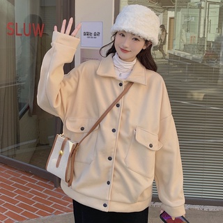 Áo khoác tay dài dáng rộng màu trơn dễ phối đồ thời trang phong cách Hàn Quốc