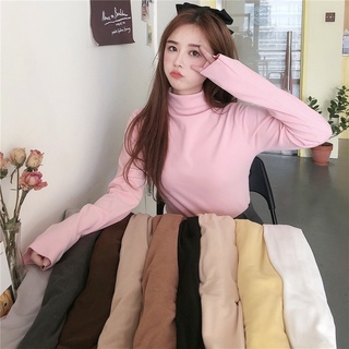 Áo thun nữ cổ lọ tay dài màu trơn đơn giản thời trang Hàn Quốc