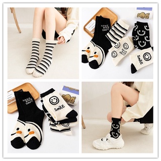 Vớ Dài Bằng Vải Dày Mềm Mại Thoải Mái In Họa Tiết Mặt Cười Dễ Thương Đơn Giản Phong Cách Thể Thao Cho Nữ Sinh