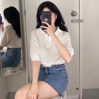 Áo Polo Dệt Lưới, Áo Mongtoghi Trắng Nữ Basic, Labibi