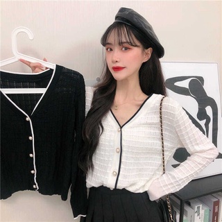 Áo Thun Len Áo Khoác Cardigan Tay Dài Nữ Ulzzang Cổ Tim