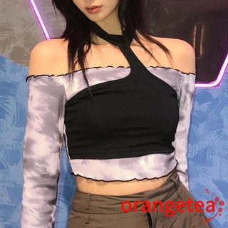 Áo Croptop Trễ Vai Tay Dài Màu Sắc Trơn Thời Trang Đường Phố Cho Nữ