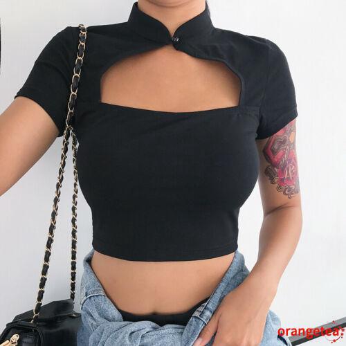Áo Thun Tay Ngắn Cổ Tròn Màu Trơn Thiết Kế Khoét Lỗ Thời Trang Mùa Hè Cho Nữ