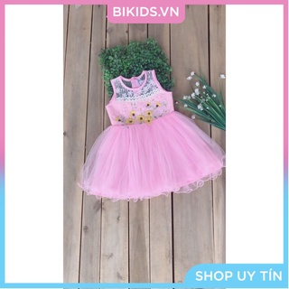 Váy thêu hoa pha ren công chúa Abikids