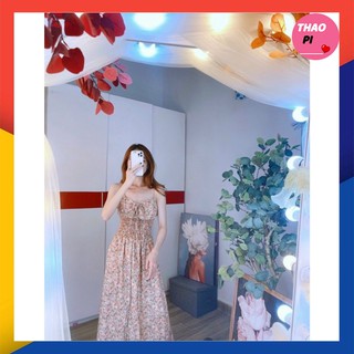 Đầm hai dây đầm maxi hoa nhí trễ ngực xếp ly đi chơi đi tiệc du lịch hẹn hò siêu đẹp quyến rũ hình thật