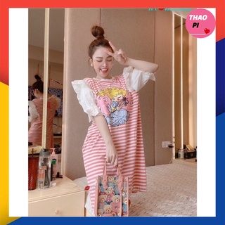 Váy suông sọc in hình tay bèo năng động dễ thương