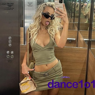Dance1o1-áo Vest Cổ Yếm Màu Rắn