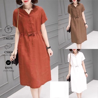 {Hàng Sẵn} Đầm suông nữ dáng xòe chất liệu đũi mềm mịn ít nhăn thiết kế có cúc đóng trước ngực