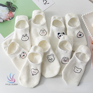 Tất vớ nữ cổ ngắn dễ thương cotton hình thú màu trắng mỏng thoáng YR YUE