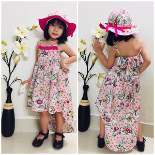 Đầm voan lụa đuôi tôm kèm nón cho bé đi chơi đi biển