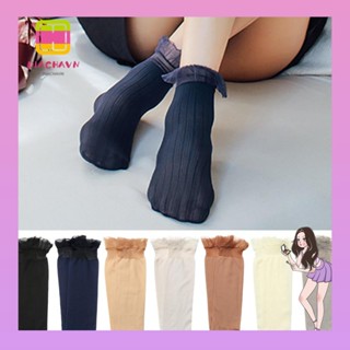 Vớ Lụa Phối Ren Màu Trơn Co Giãn Gợi Cảm Cho Nữ