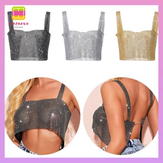 DIACHAVN Áo Croptop Đính Đá Lấp Lánh Xinh Xắn Dành Cho Nữ