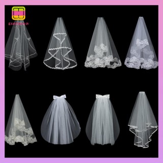 DIACHAVN Mạng Che Mặt Hai Lớp Viền Ren Màu Trắng Ngà Kèm Lược Cài Tóc Cho Cô Dâu