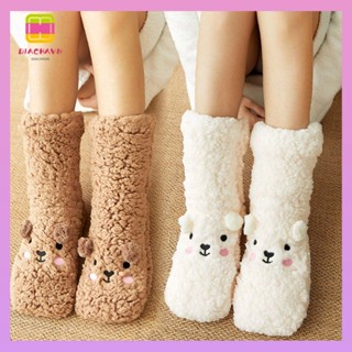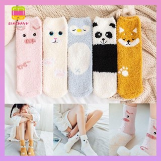 DIACHAVN Tất Nhung San Hô Dày Dặn Ấm Áp Kiểu Hoạt Hình Động Vật Đáng Yêu