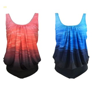 Bộ Đồ Bơi Hai Mảnh Xếp Ly Phối Màu Gradient Thời Trang Mùa Hè Dành Cho Nữ Plus Size