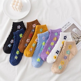 Combo 5 Tất nữ cổ ngắn viền hoa vân nổi phong cách hàn quốc