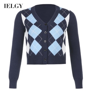 Áo len dài tay IELGY cổ chữ V họa tiết hình thoi phong cách retro cho nữ