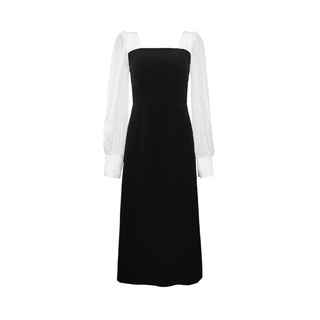 Đầm IELGY cổ vuông tay dài phong cách hepburn pháp thời trang màu đen dành cho nữ