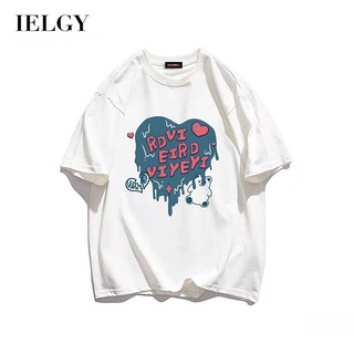 Áo thun IELGY dáng rộng tay ngắn họa tiết hoạt hình tùy chọn màu sắc cho cặp đôi