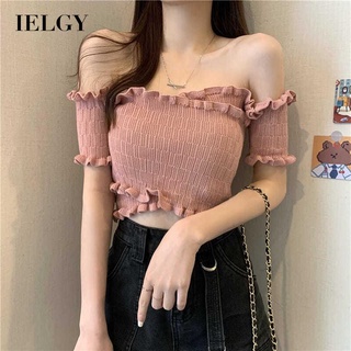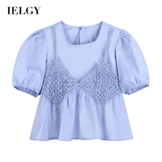 Áo kiểu IELGY tay ngắn ôm dáng ngọt ngào phong cách phương Tây thời trang dành cho nữ