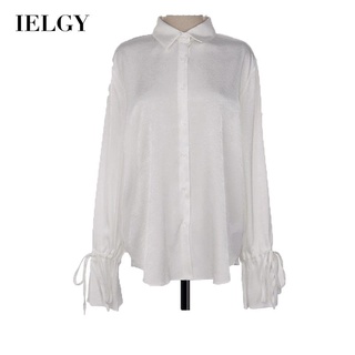 Áo sơ mi IELGY tay dài dáng rộng màu trắng thời trang màu thu dành cho nữ