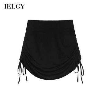 Váy IELGY lưng cao phối dây rút màu trơn dáng chữ A thời trang dành cho nữ