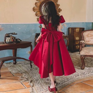 ĐẦM MIDI ĐỎ CỔ VUÔNG VIỀN HẠT NƠ LƯNG