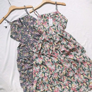 Đầm hoa retro midi nhíu ngực xẻ đùi