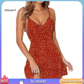 Đầm Hai Dây Cổ Chữ V Họa Tiết Chấm Bi Thời Trang Mùa Hè Cho Nữ