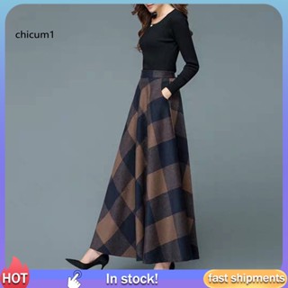 Chân Váy Chữ A Lưng Thun Phối Túi Lớn In Họa Tiết Caro Phong Cách Retro Thu Đông Cho Nữ