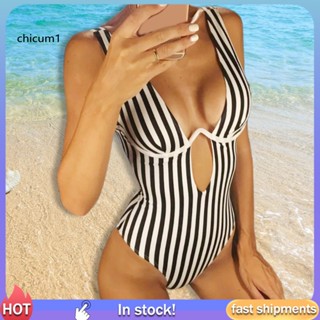 Đồ Bơi Một Mảnh Cổ Chữ V Khoét Sâu Họa Tiết Sọc Gợi Cảm Cho Nữ
