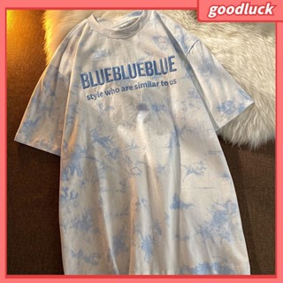 Áo Thun Tay Lỡ Cổ Tròn Thêu Họa Tiết Màu Nhuộm Phong Cách Hip Hop Đường Phố Cho Nữ