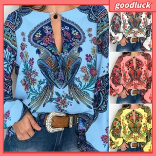 Áo Thun Tay Dài Cổ Tròn In Họa Tiết Nhiều Màu Sắc Phong Cách Dân Tộc Retro Dành Cho Nữ