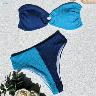 Bộ Bikini 2 Mảnh Lưng Cao Co Giãn Màu Sắc Tương Phản Thời Trang Mùa Hè Cho Nữ
